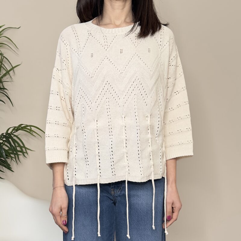 Descrizione: Maglia ricamo frange burro
