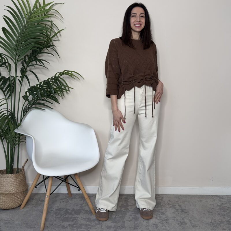 HAVEONE – Maglia ricamo frange cioccolato