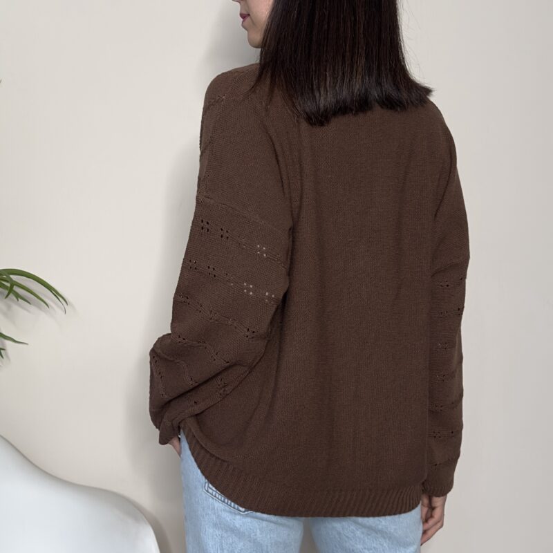 HAVEONE – Cardigan ricamo frange cioccolato