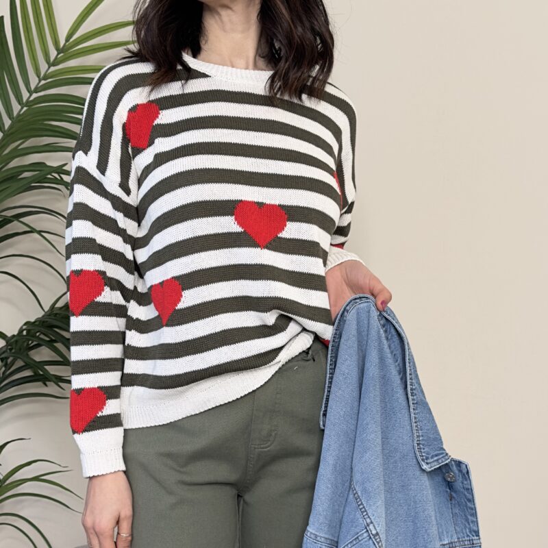 BLUE JOINT – Maglia cuori rossi riga verde