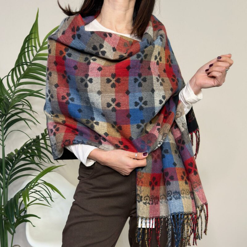 Descrizione: Sciarpona double grigio – doppia fantasia