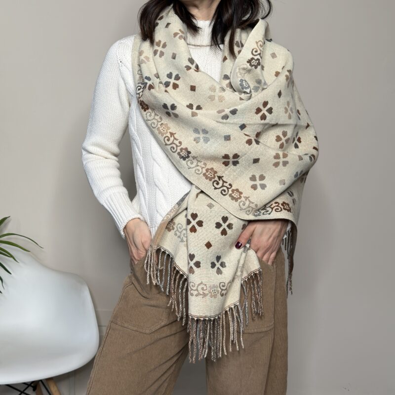 Descrizione: Sciarpona double nocciola – doppia fantasia
