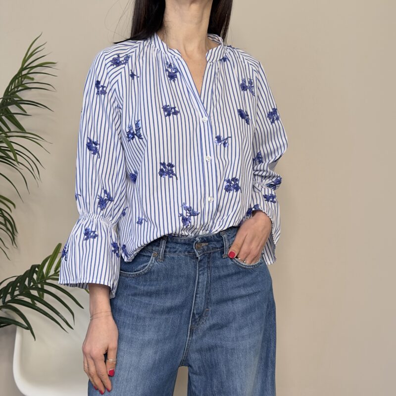 Descrizione: Camicia manica ampia con applicazioni in paillettes