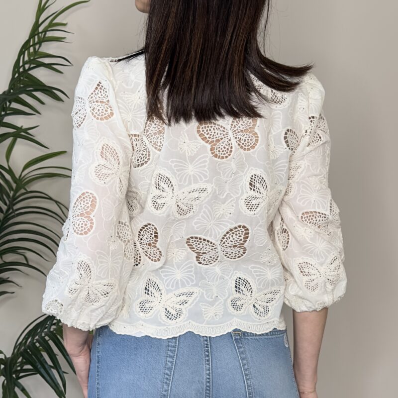 Descrizione: Camicia farfalle lavorazione macramè e micropaillettes