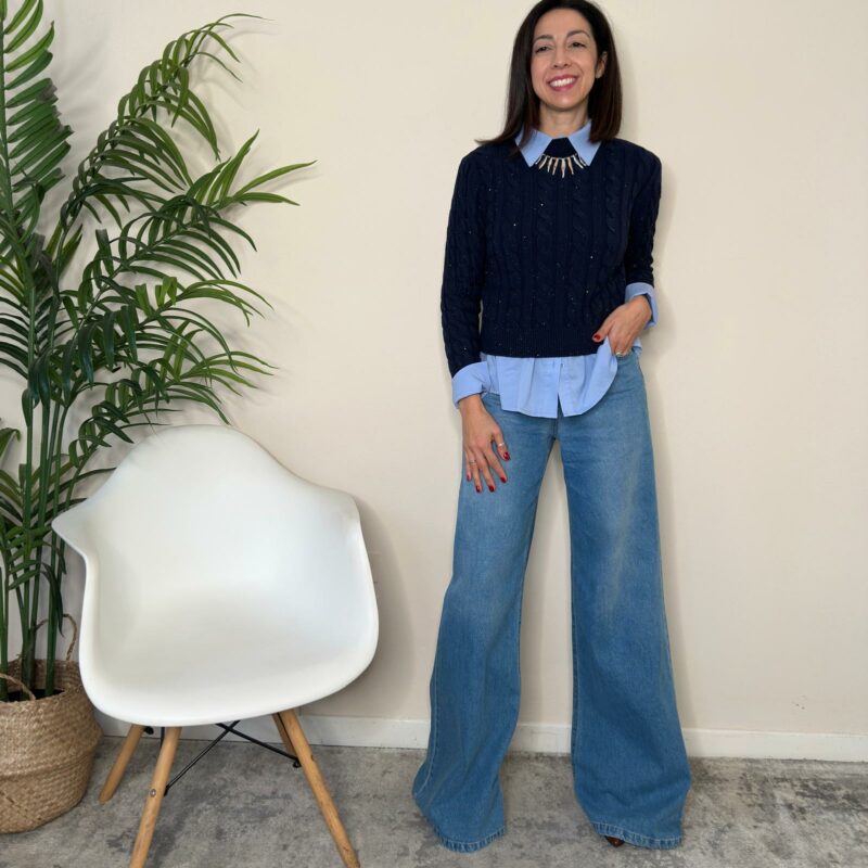 BLUE JOINT – Maglia treccia e paillettes nocciola