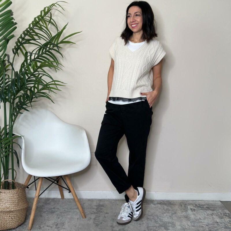 Descrizione: Pantalone nero elastico dietro, con cintura