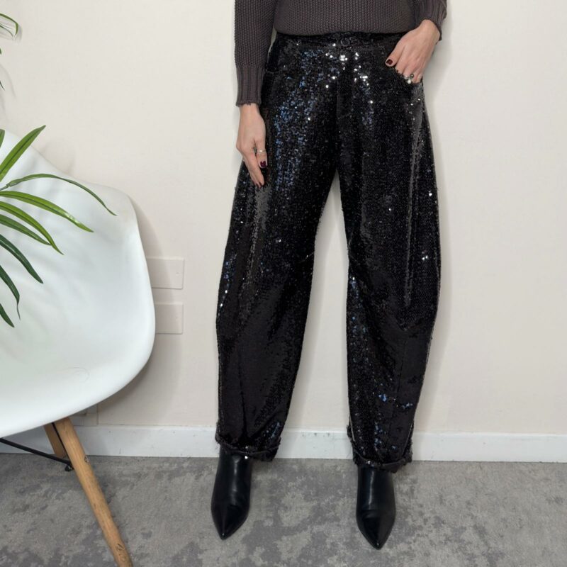 Descrizione: Pantaloni paillettes ovetto, foderati all’interno