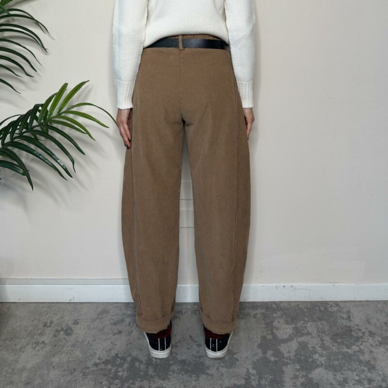 Descrizione: Pantalone velluto cammello con elastico dietro e cintura
