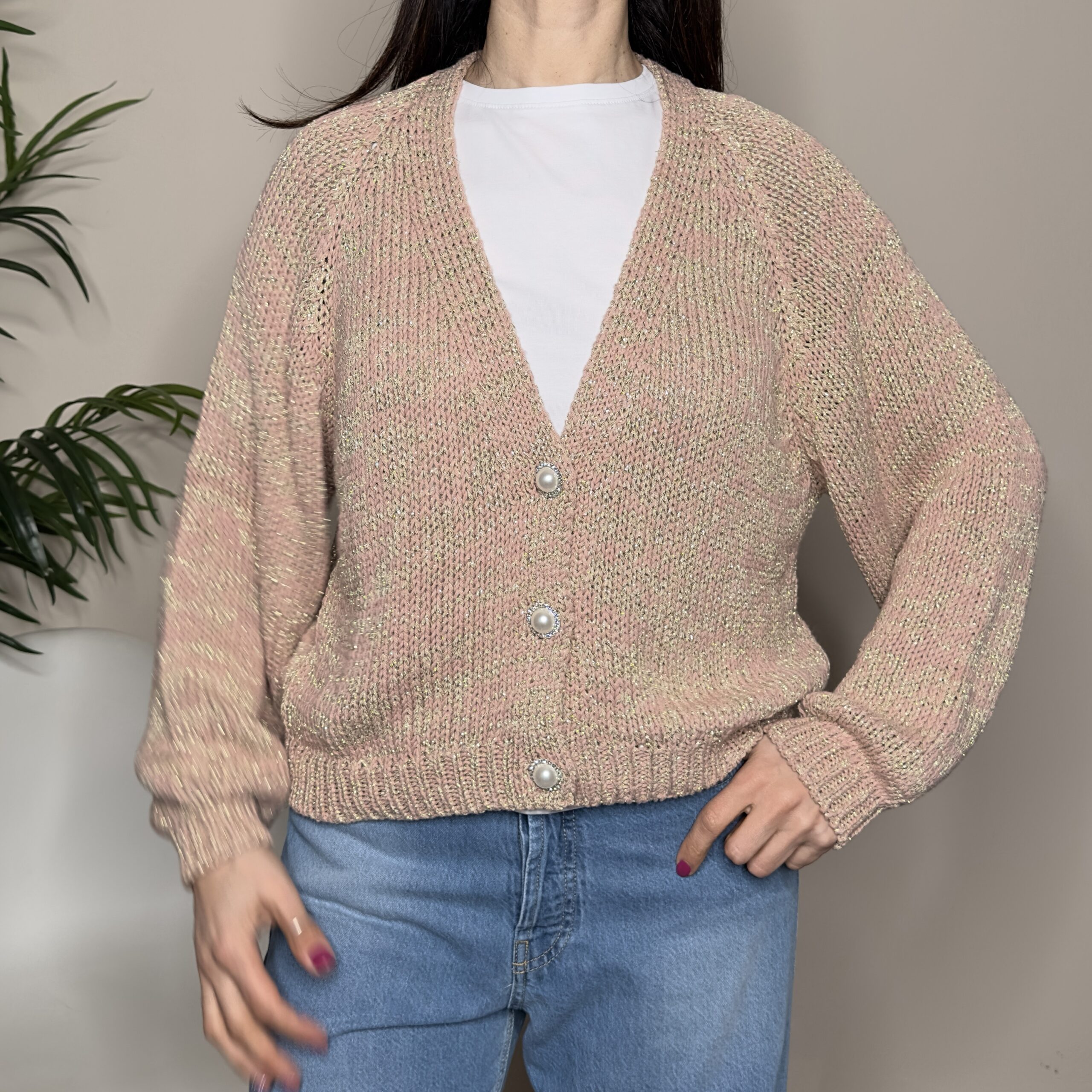 HAVEONE – Cardigan bottone gioiello rosa