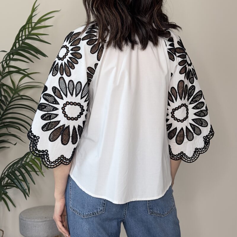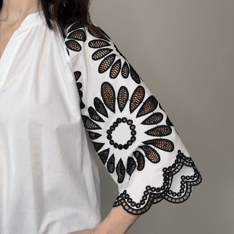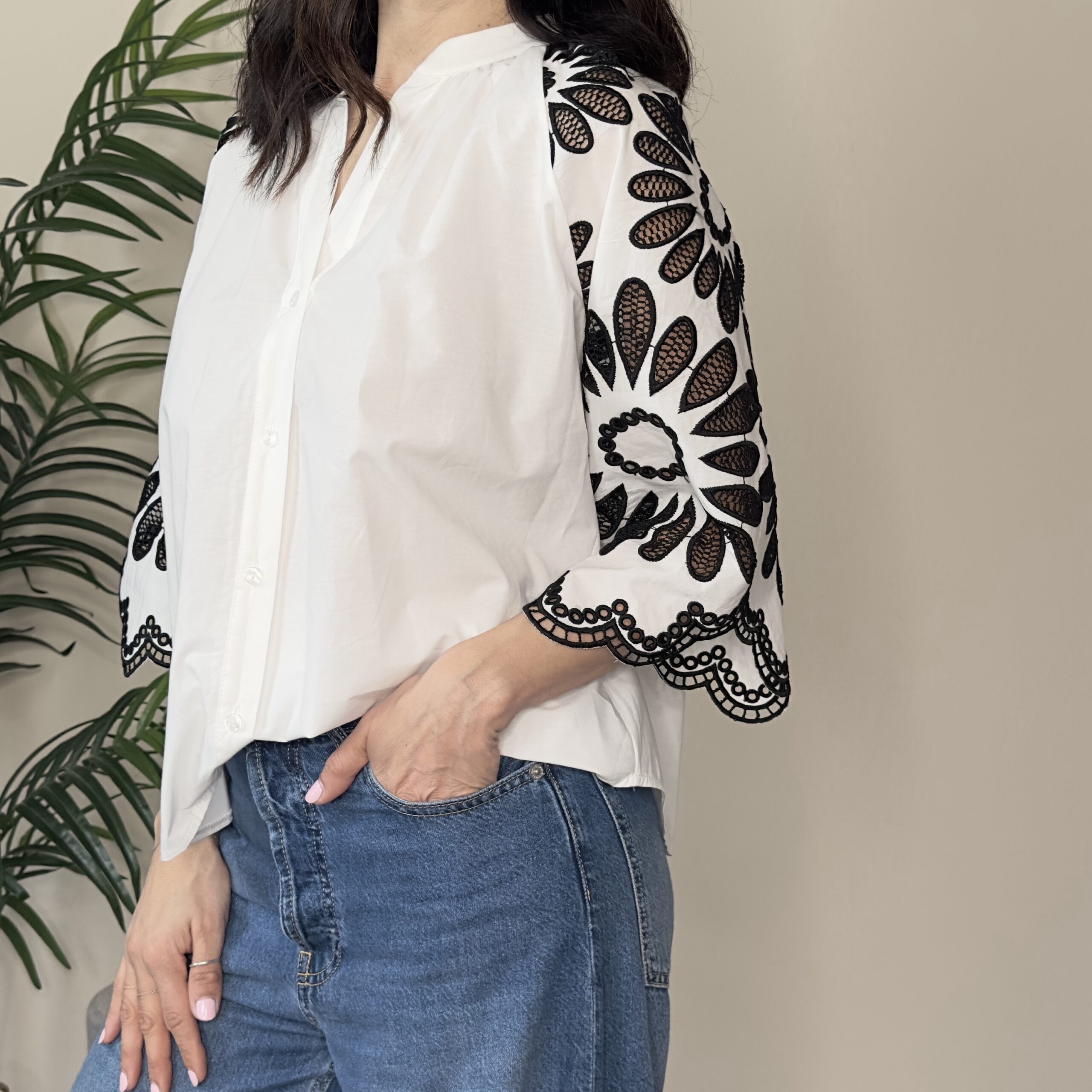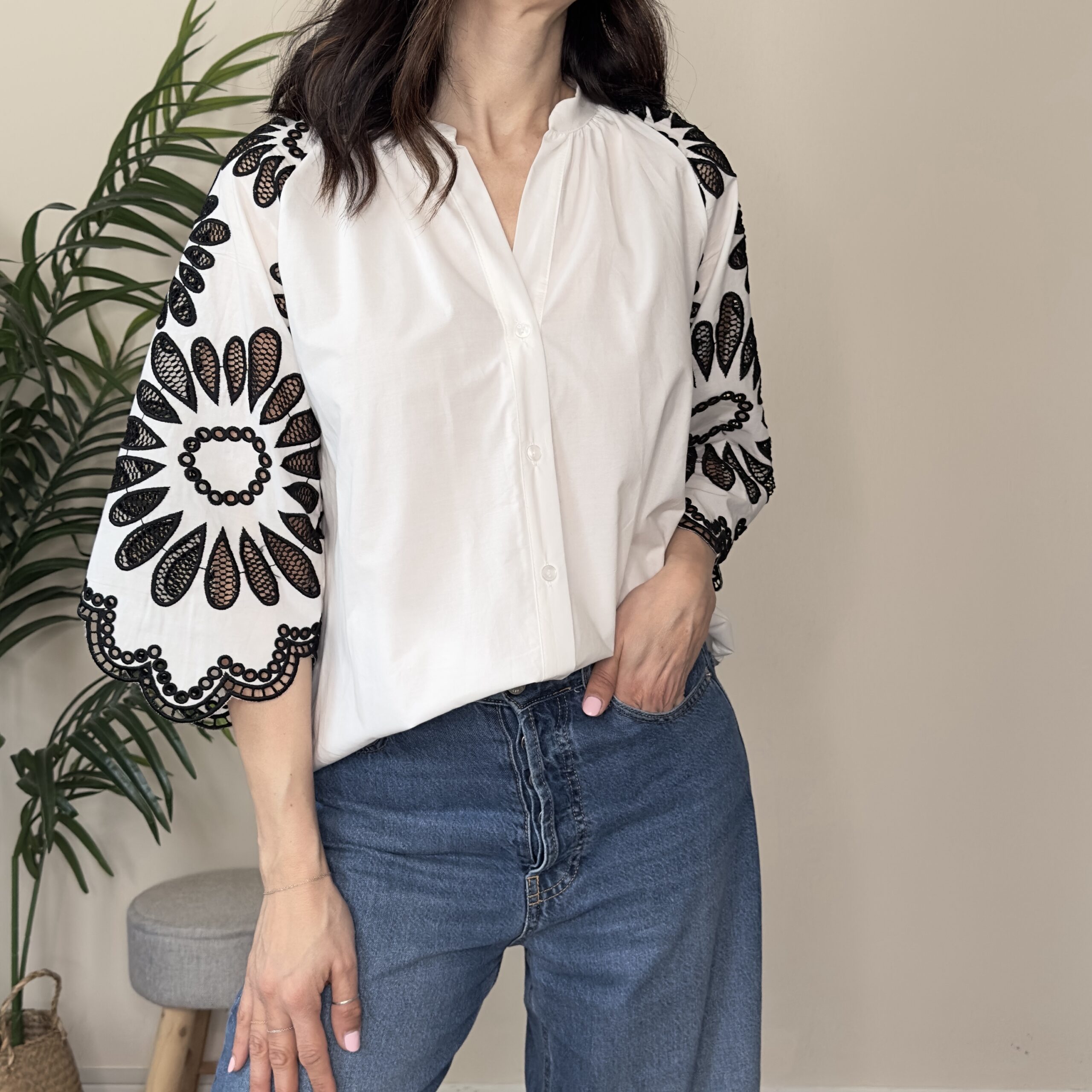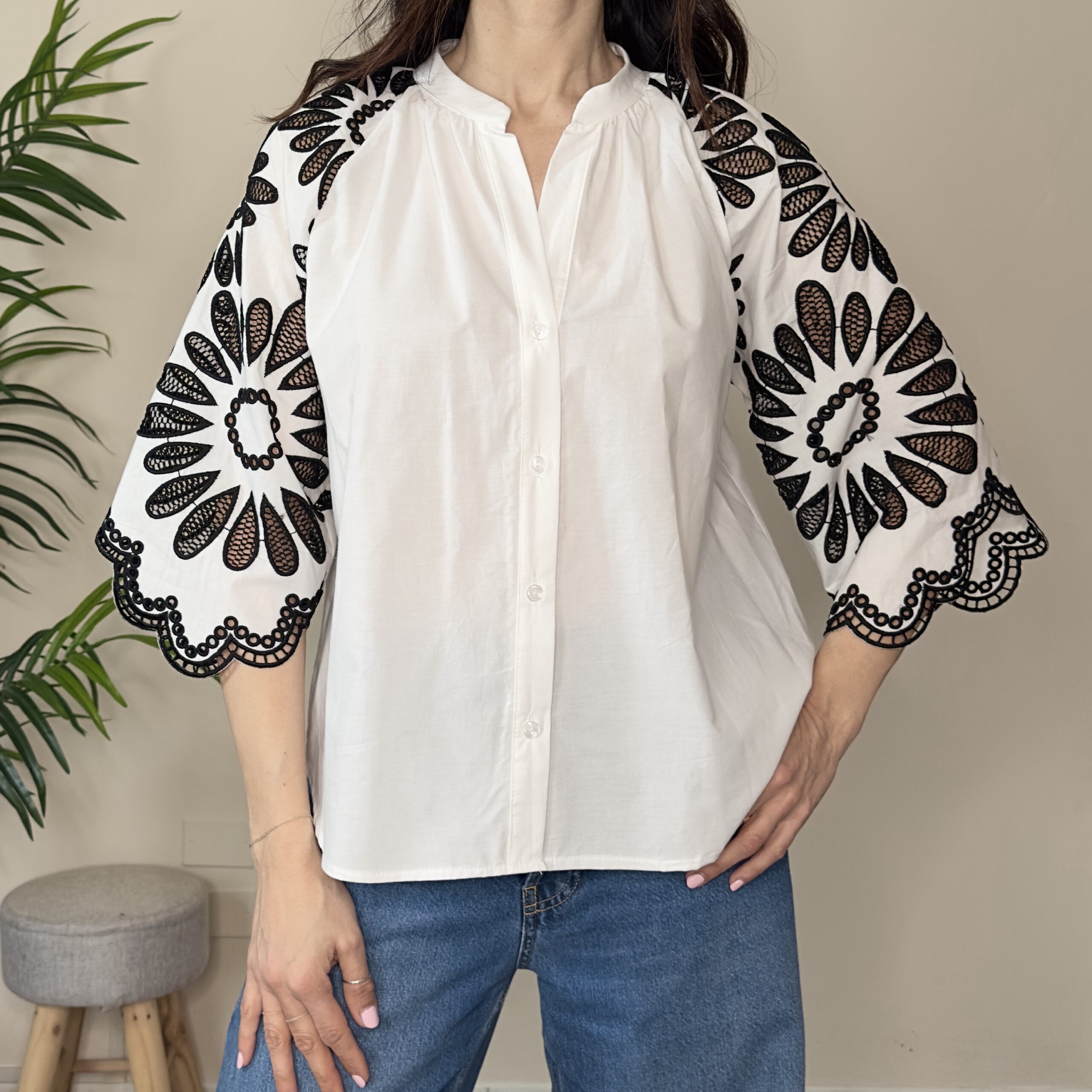 Descrizione: Camicia manica ampia con applicazioni in paillettes