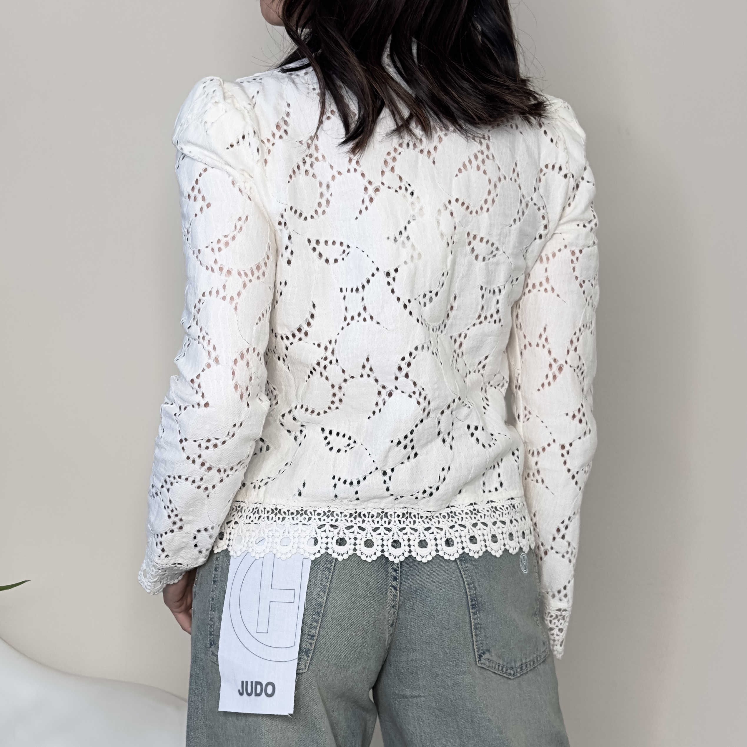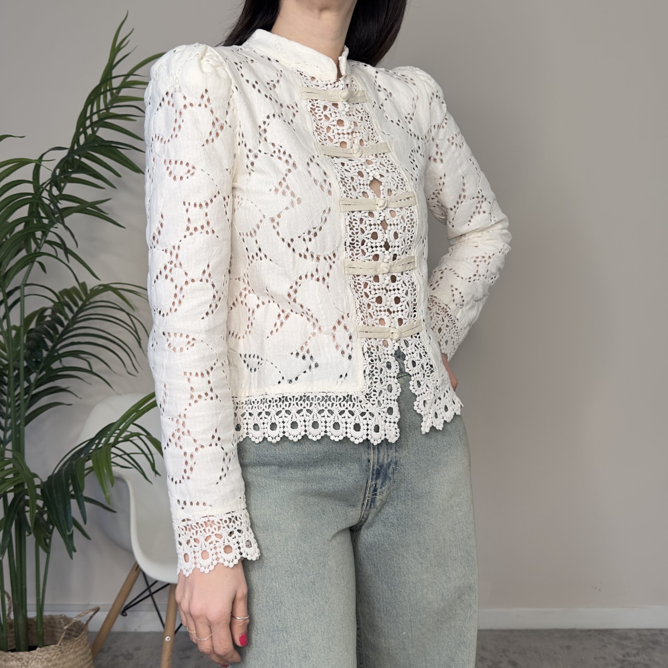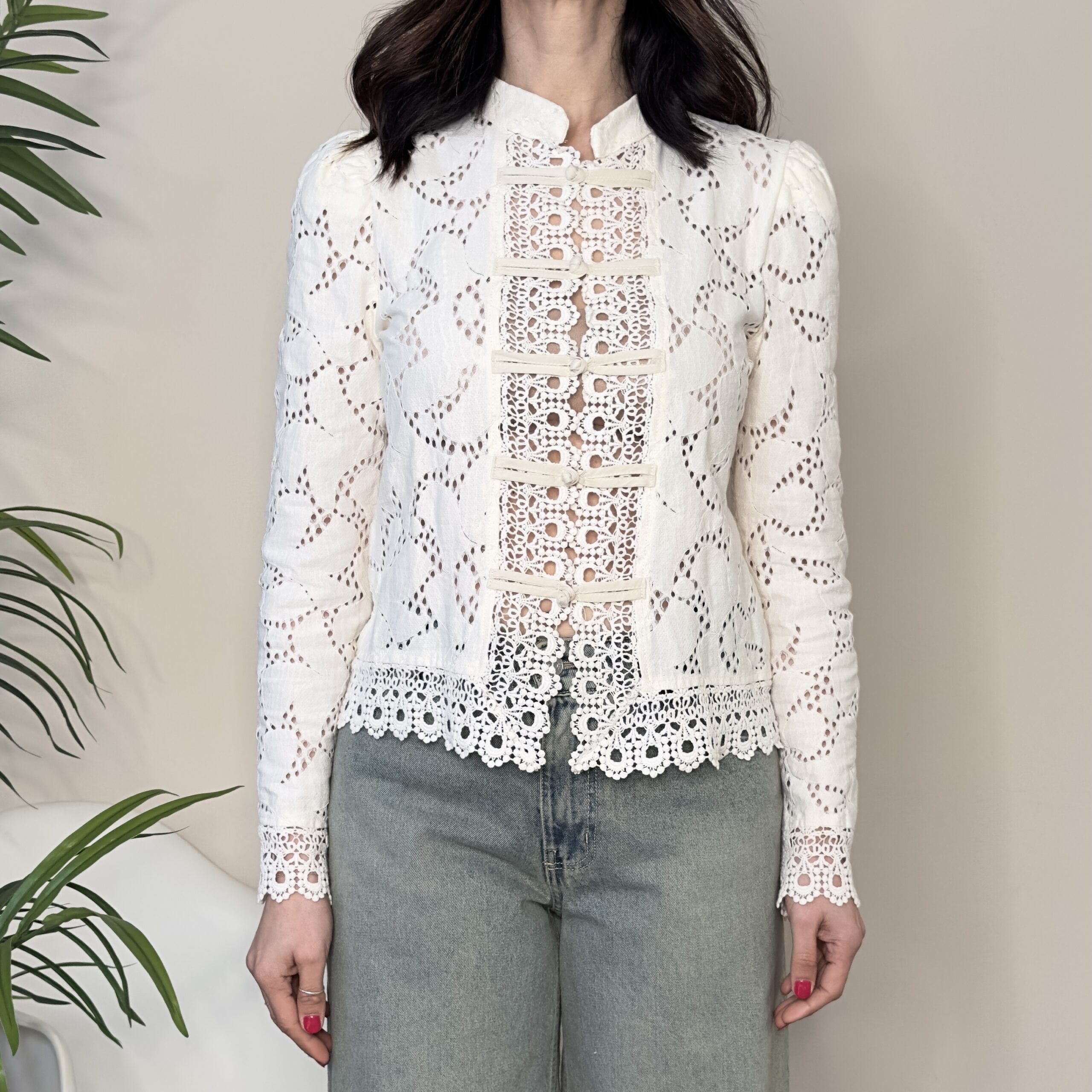 Descrizione: Camicia crop in pizzo con alamari