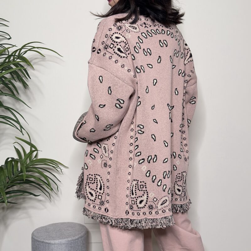 Descrizione: Cardigan fantasia bandana rosa con cintura