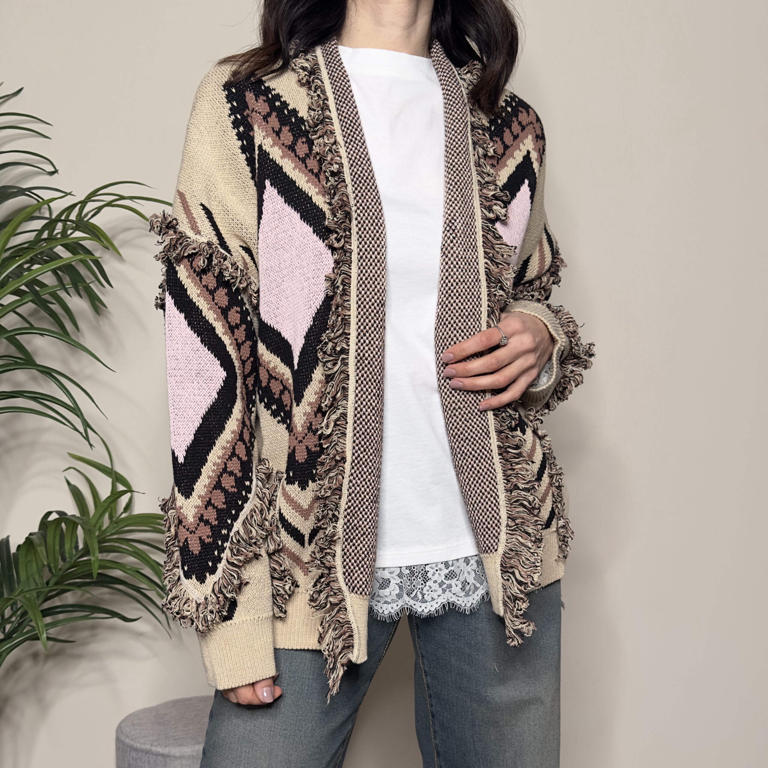 TENSIONE IN – Cardigan rombi rosa