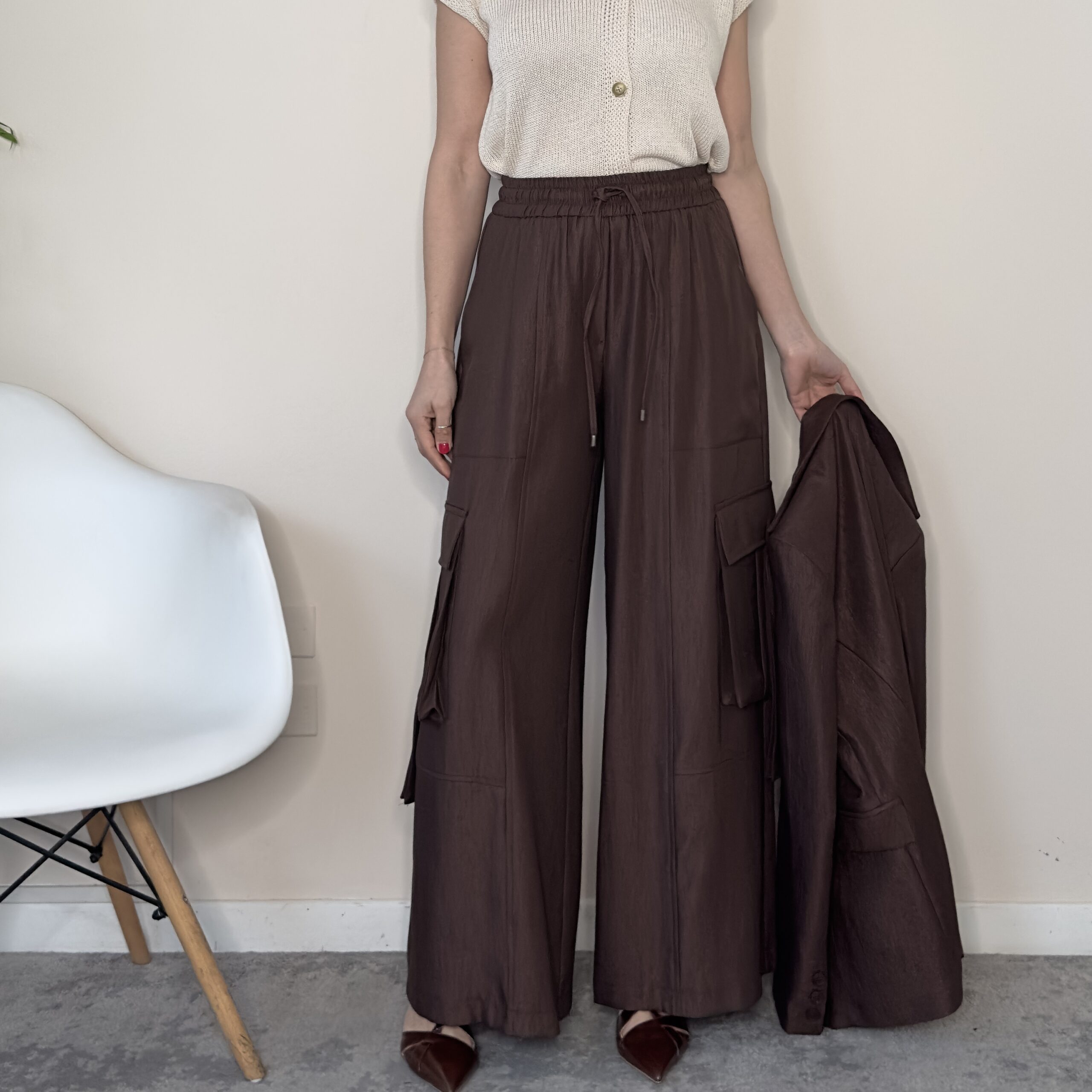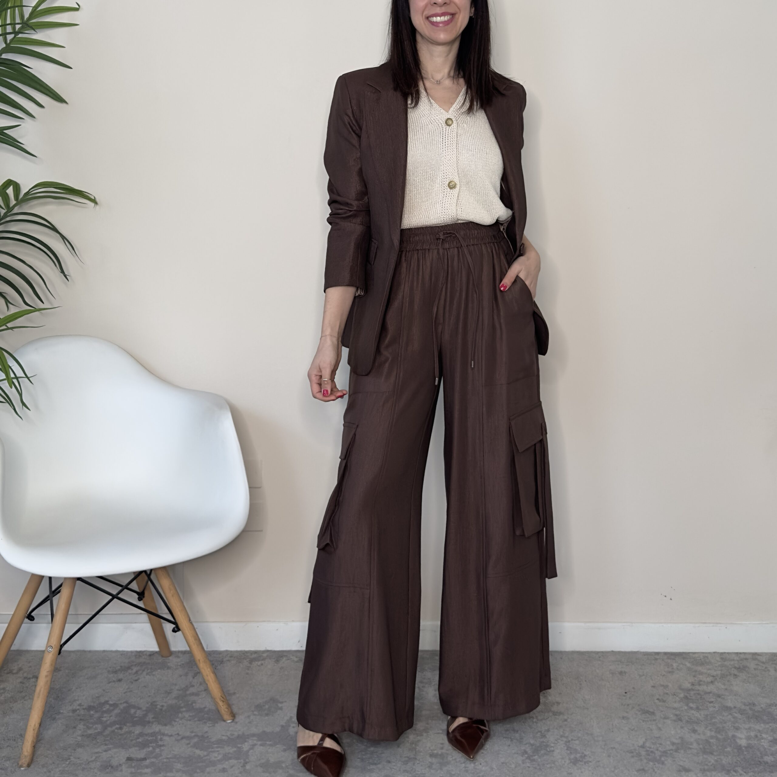 TENSIONE IN – Pantalone cargo goffrato moro
