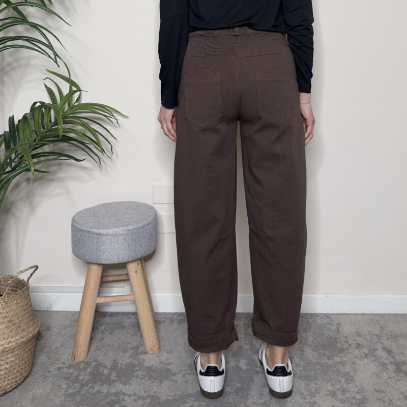 TENSIONE IN – Pantalone ovetto pence cioccolato, con elastico dietro