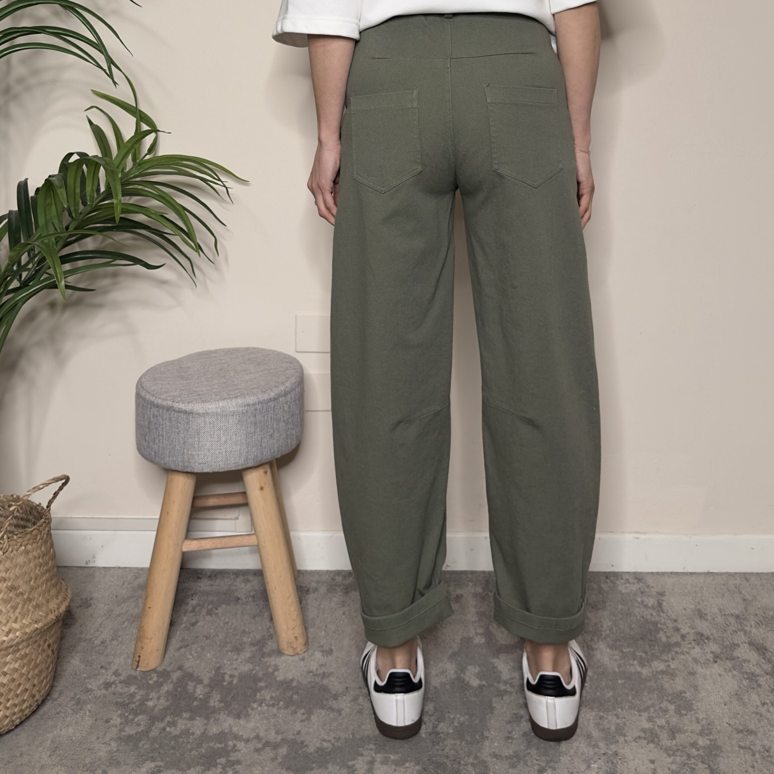 TENSIONE IN – Pantalone ovetto pence verde, con elastico dietro