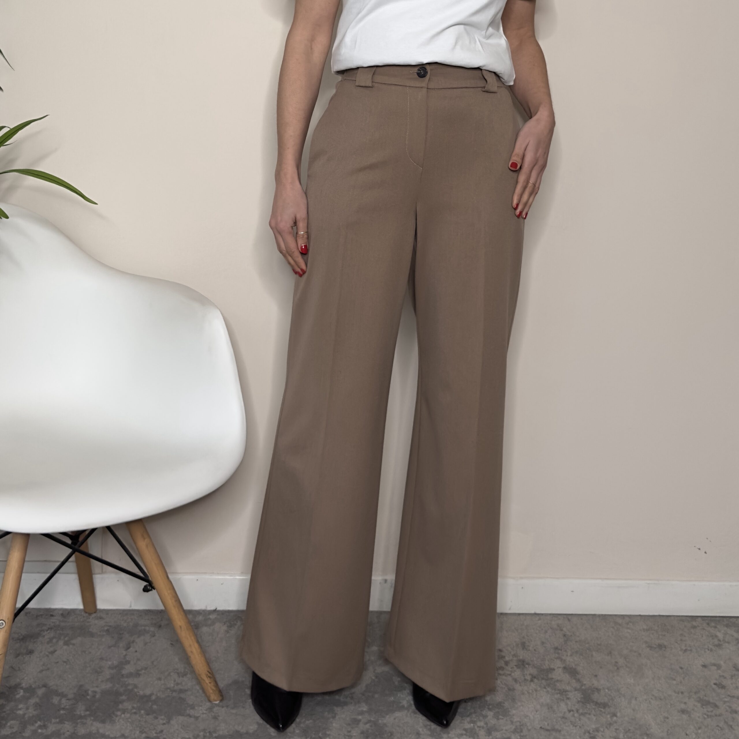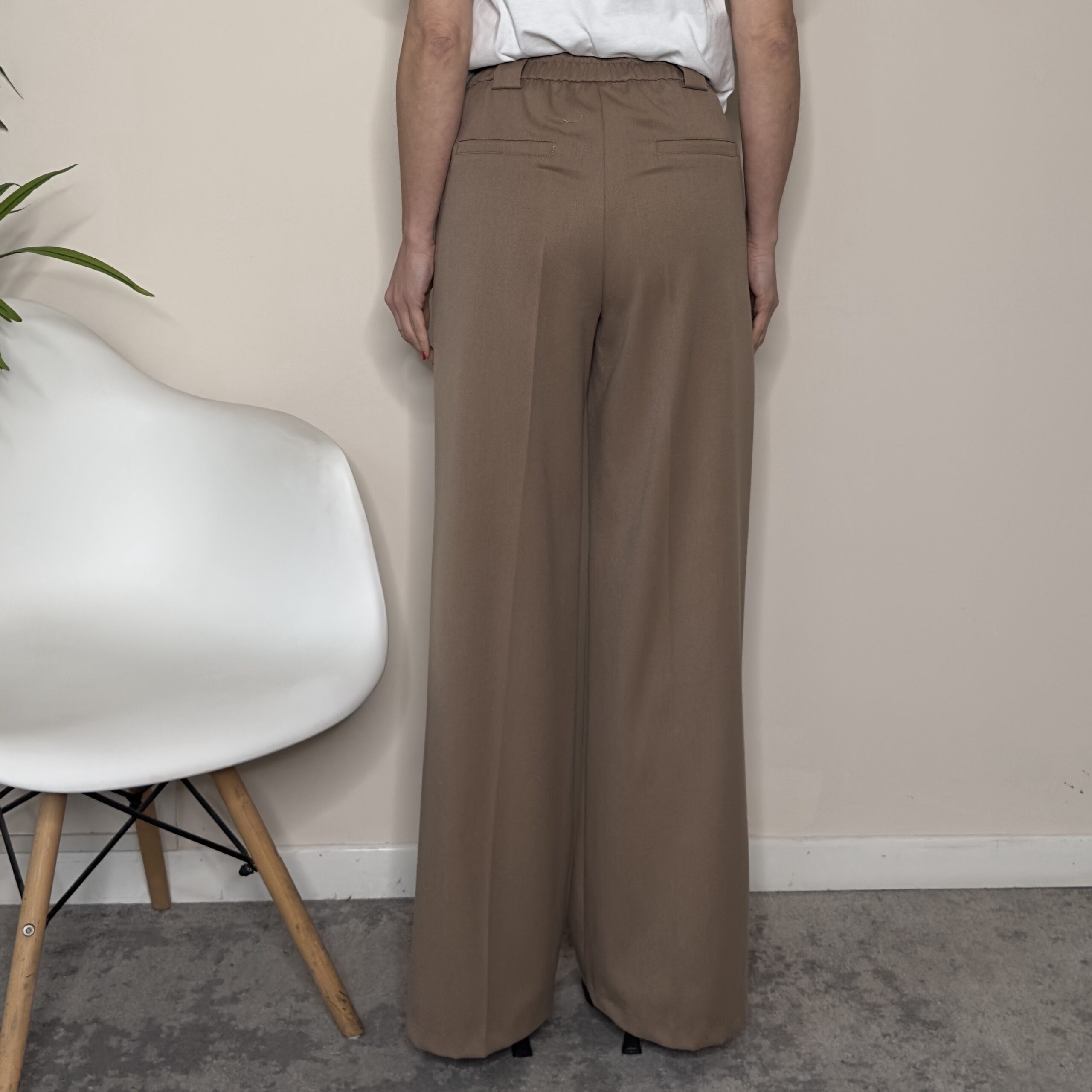 Descrizione: Pantalone palazzo fango con elastico dietro