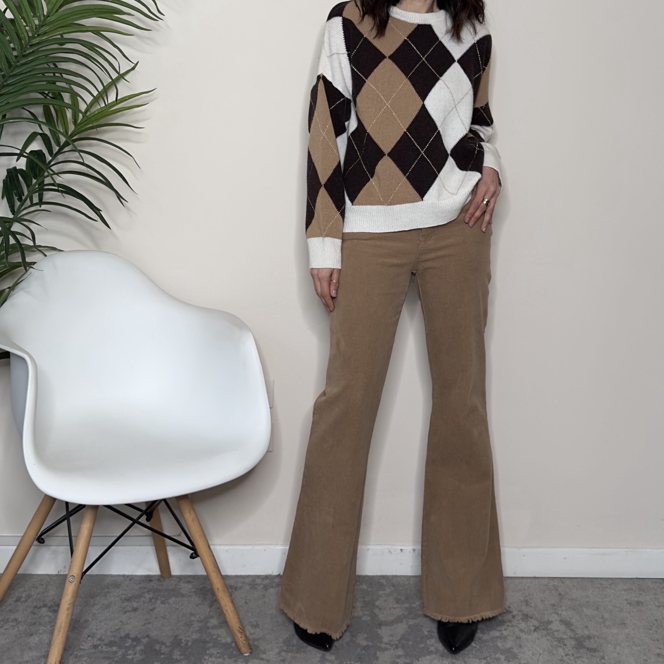 - TENSIONE IN – Pantalone zampa cammello