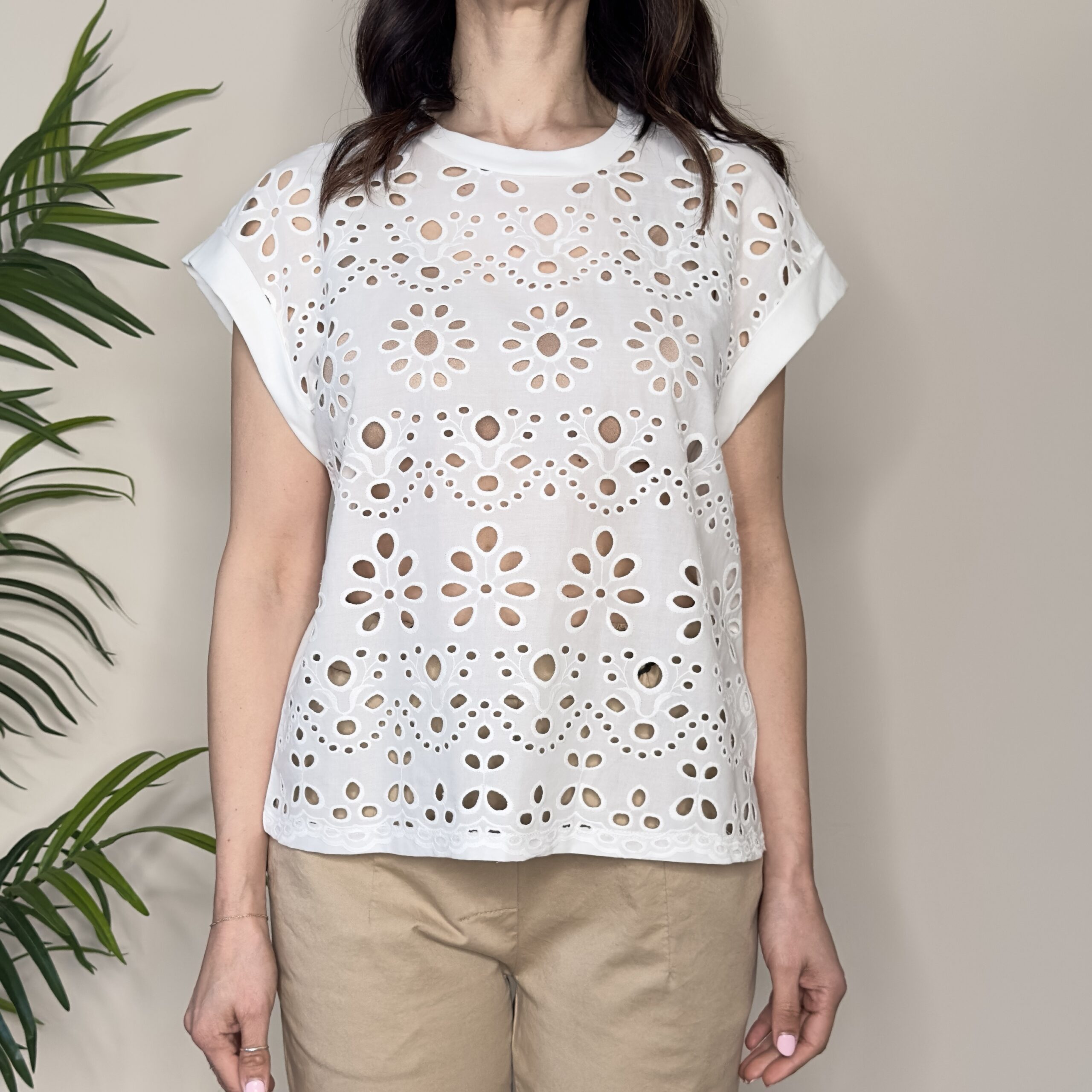 Descrizione: T-shirt macramè bianca