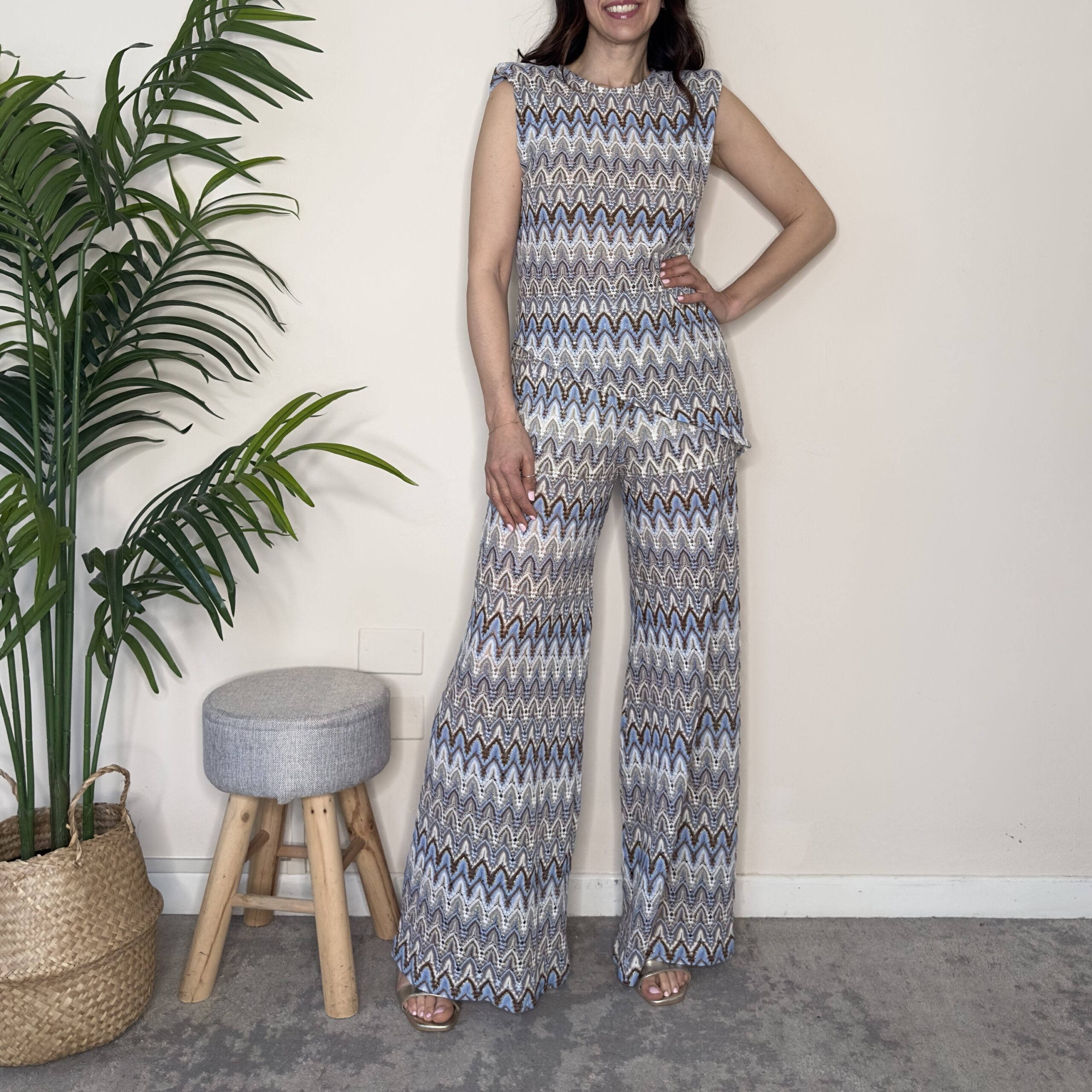 TENSIONE IN – Top fantasia chevron azzurro con spalline