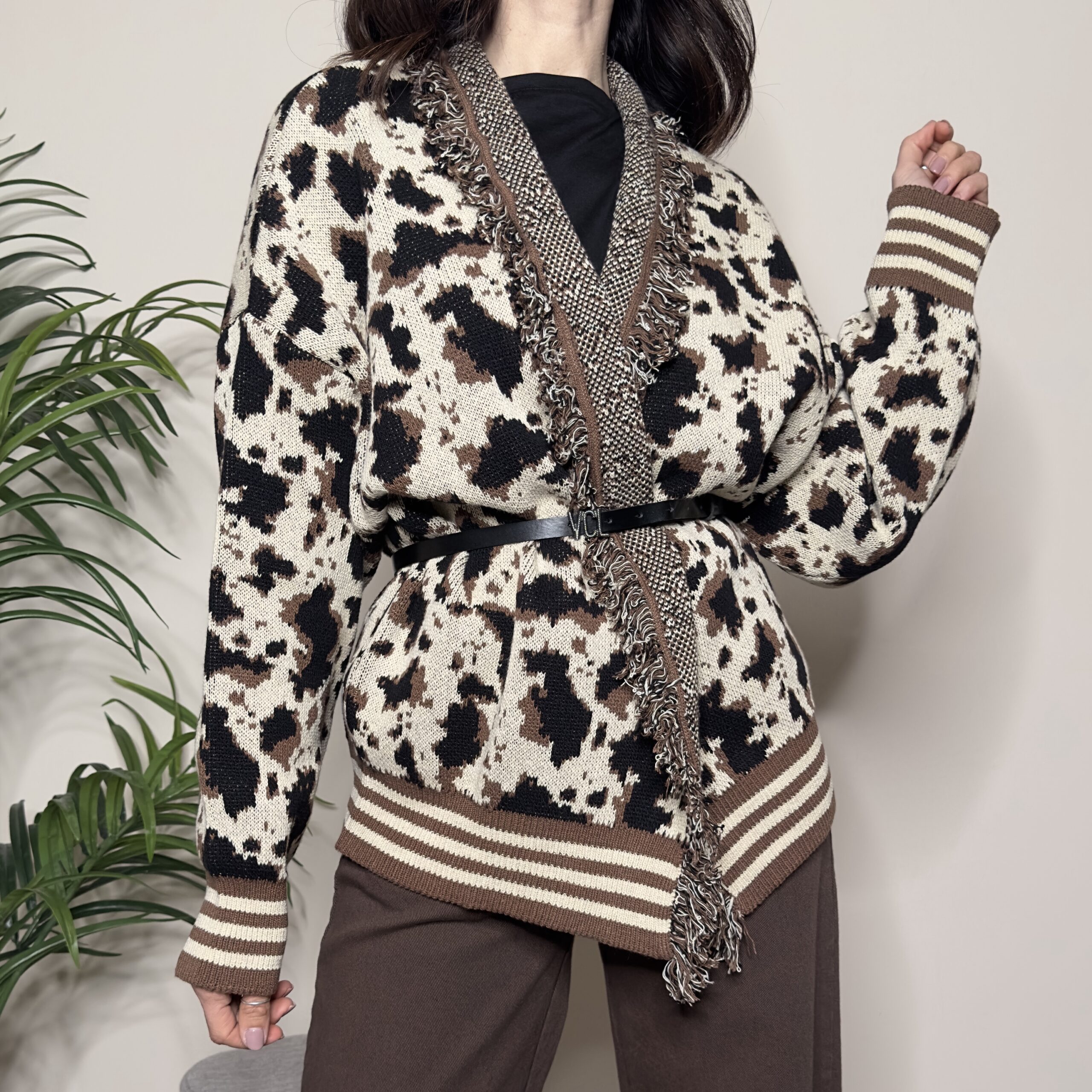 VICOLO – Cardigan fantasia con cintura