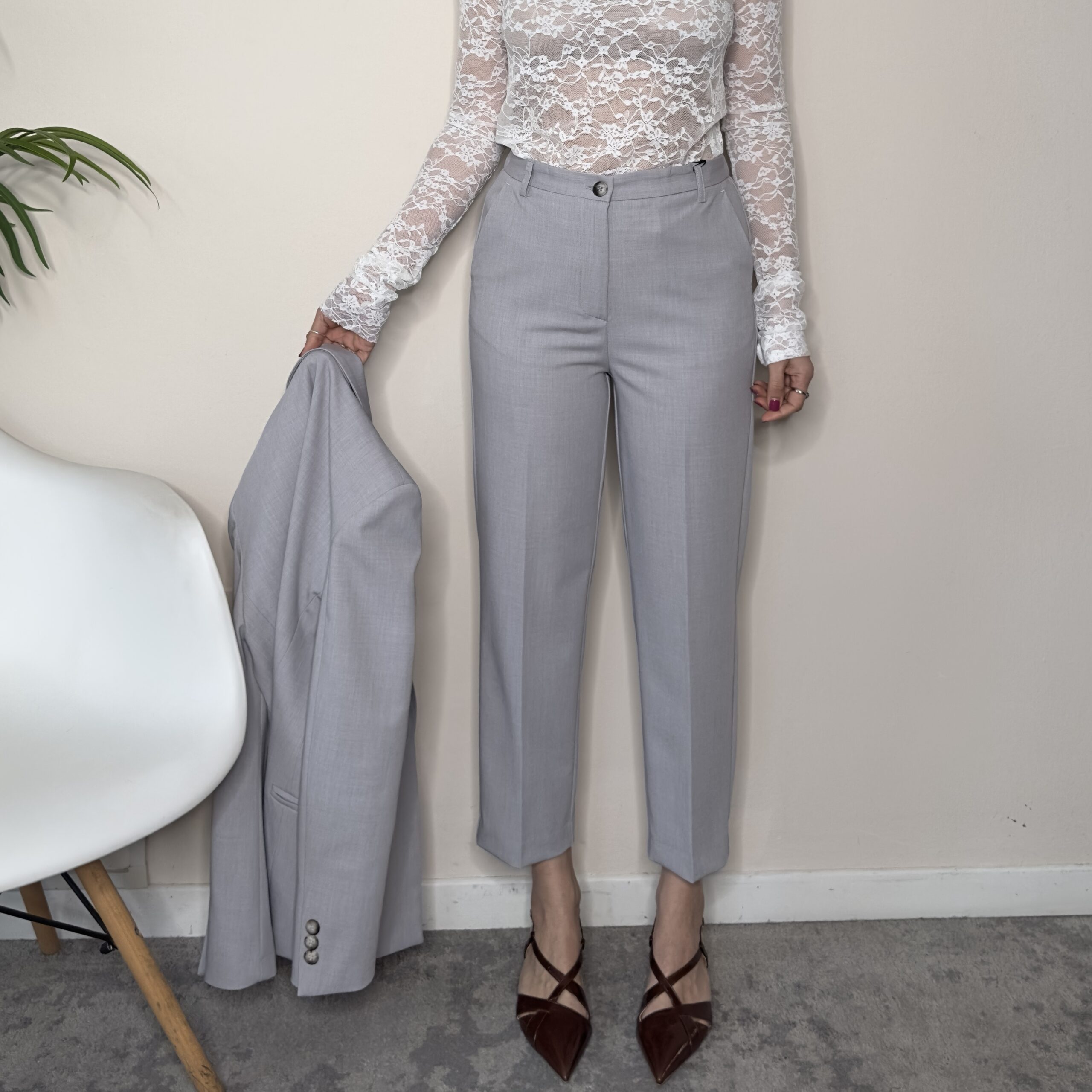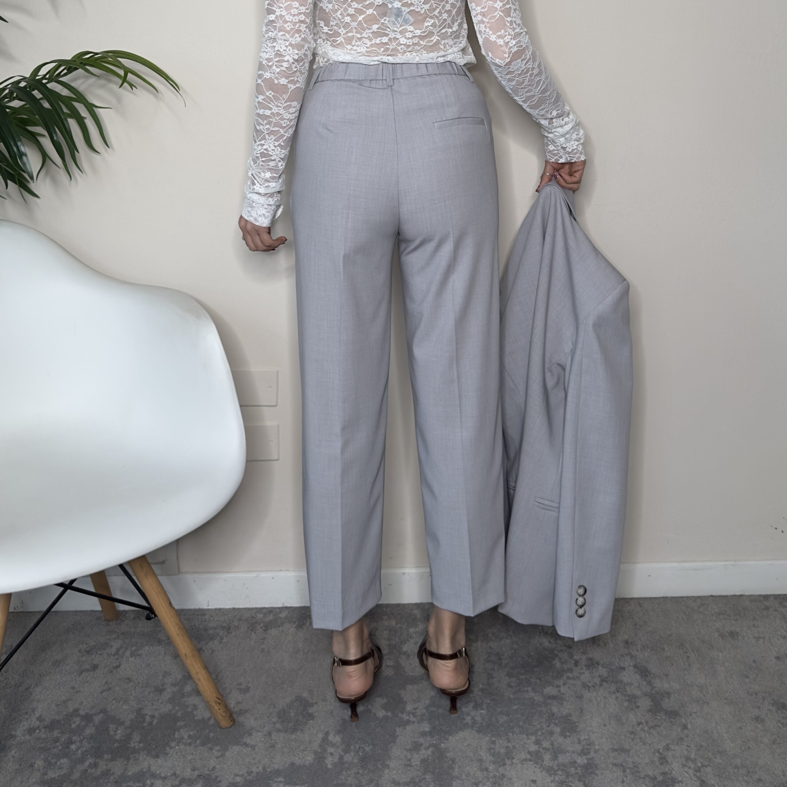 VICOLO – Pantalone sigaretta grigio perla con elastico dietro