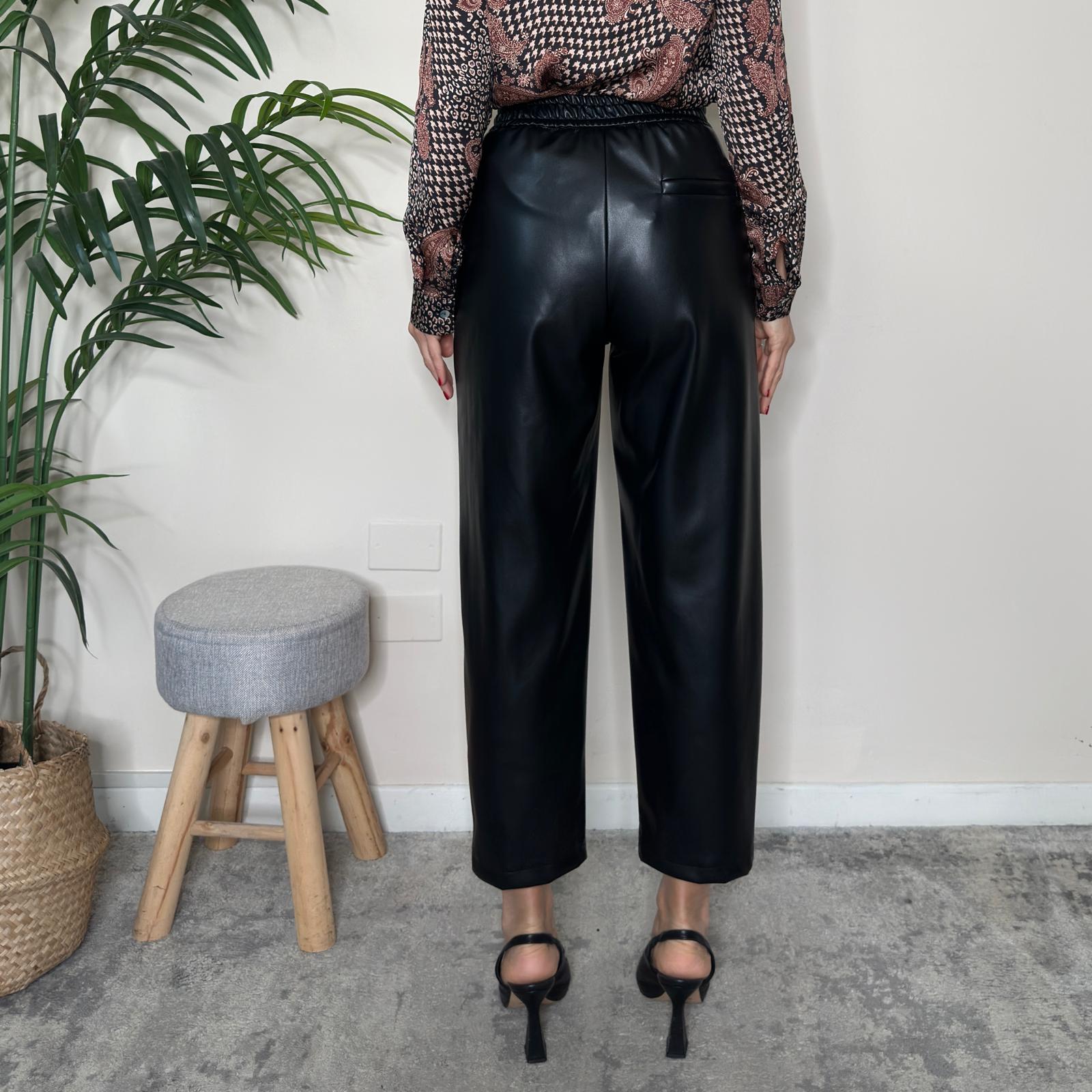 VICOLO – Pantalone similpelle con tasche ed elastico dietro